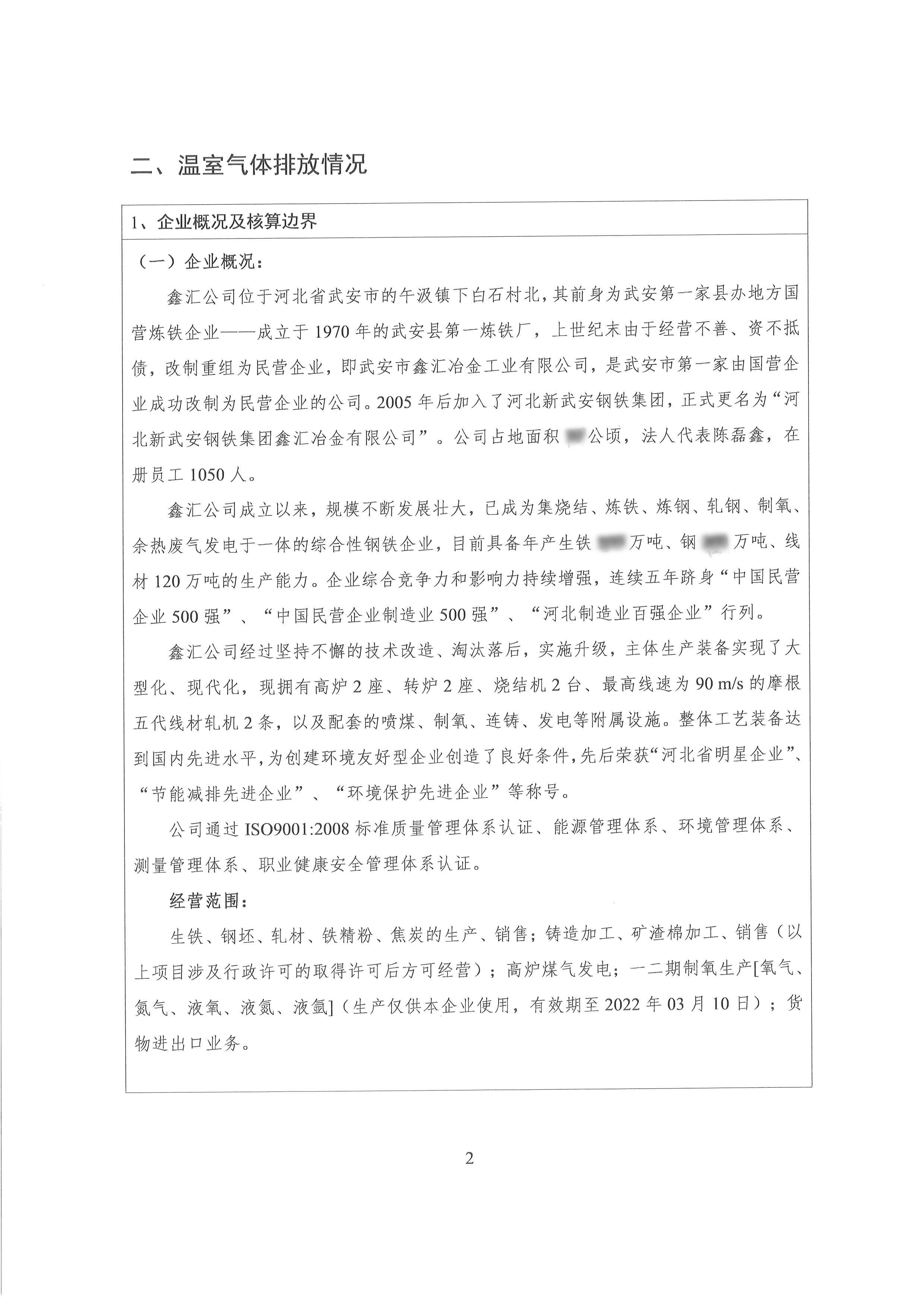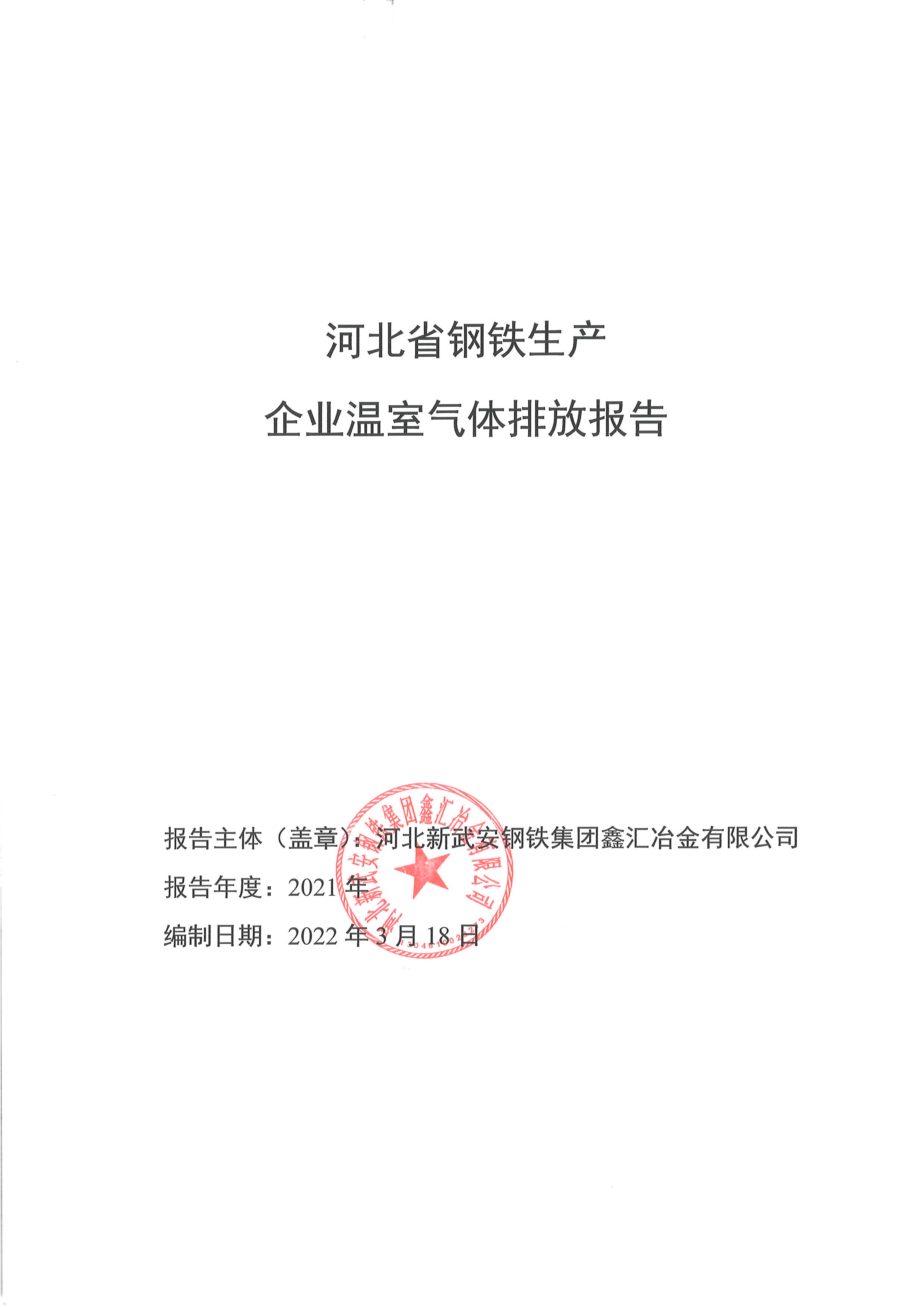 2021年河北新武安鋼鐵集團鑫匯冶金有限公司碳排放報告